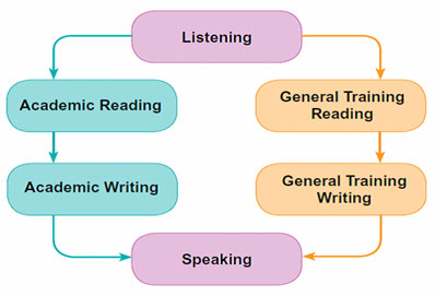 Both modules cover all four language skills – listening, reading, writing and speaking. Everyone takes the same Listening and Speaking tests. There are different Reading and Writing tests for the Academic and General Training modules.